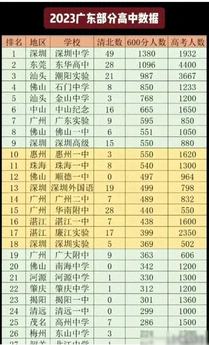 广东中学排名大洗牌,深圳强势崛起,广州面临挑战