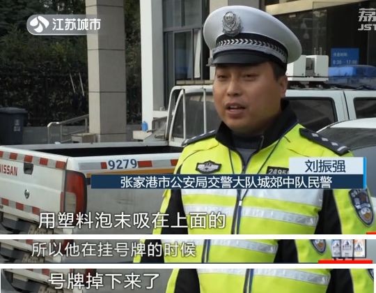 原来的车牌上竟然还粘着一副手工绘制的假牌照