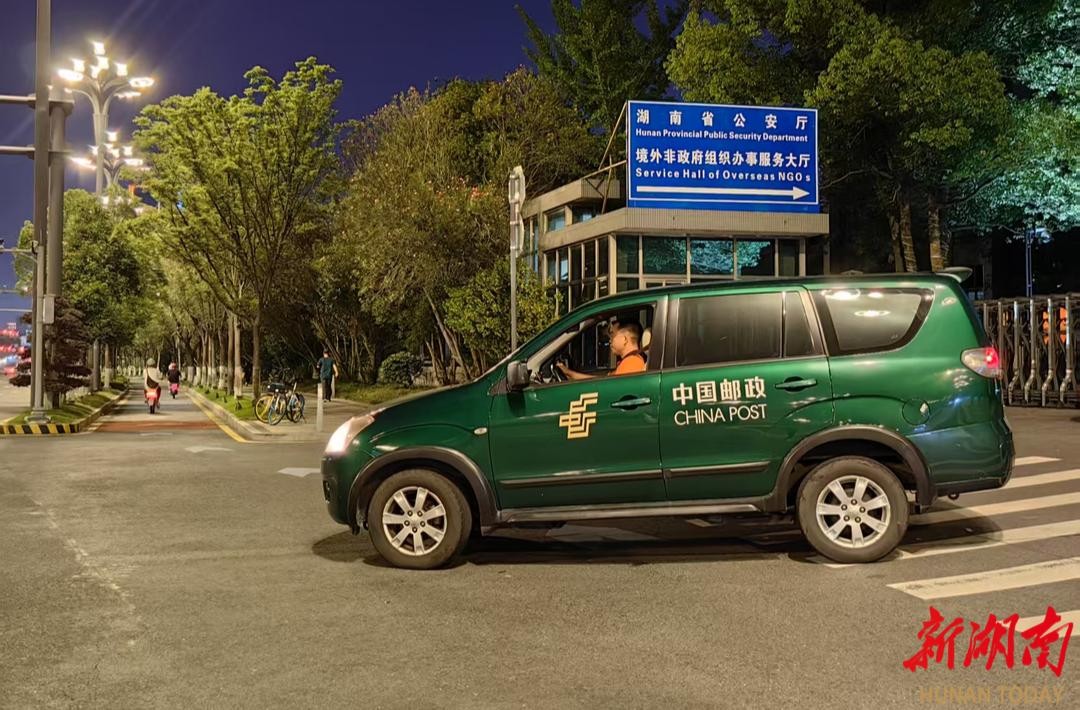 与此同时,湖南邮政长沙市分公司专门负责“高考证件护航”的邮车早已在制证中心待命。证件完成交接后,邮车立即从长沙出发驶向汨罗。夜色中,邮车星夜兼程,在高速公路上展开了一场与时间赛跑的爱心接力。