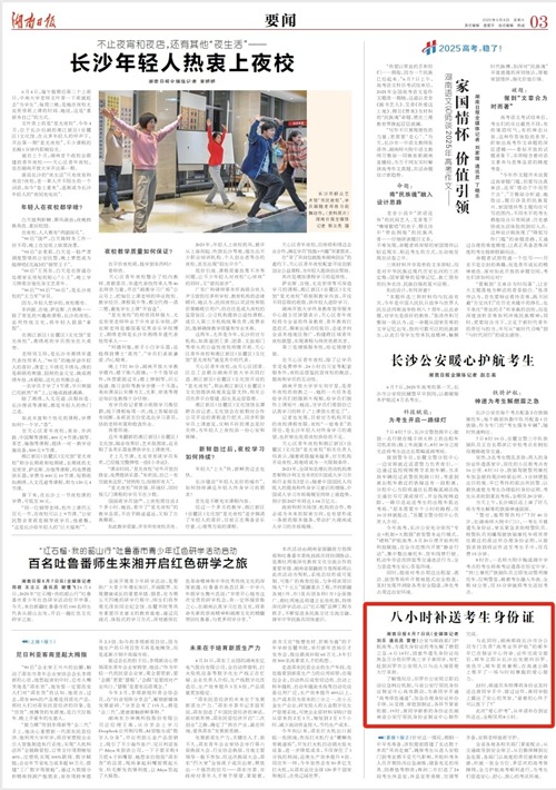 此次“爱心护考”,从申请补办到证件送达,全程仅用8小时。