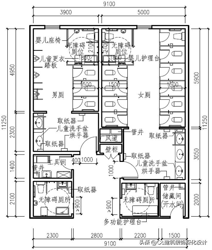 案例7 适用于机场、火车站等大型交通建筑设施内的集中式公共卫生间
