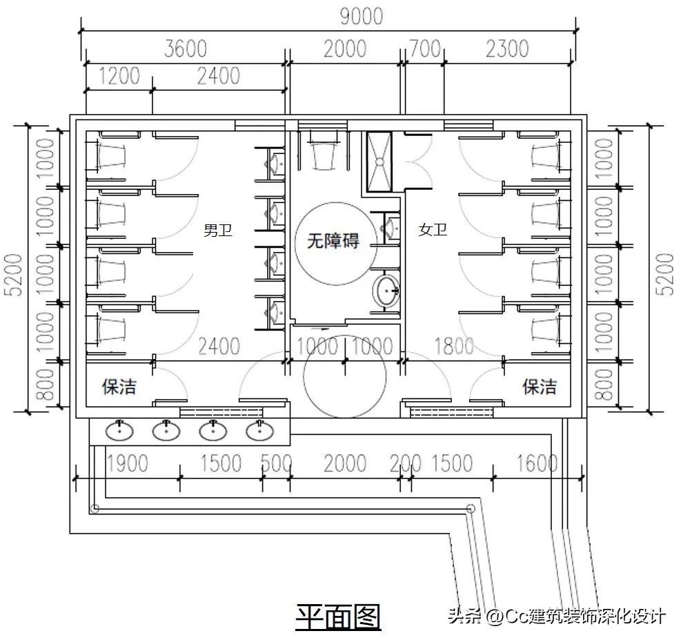 案例4 适用于地铁站台内的中小型公共卫生间