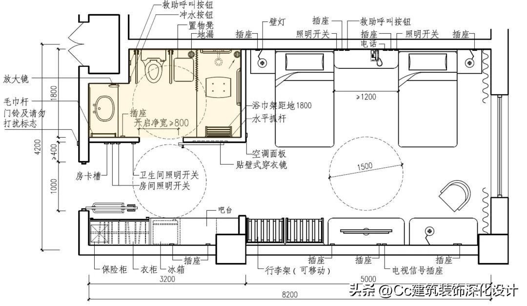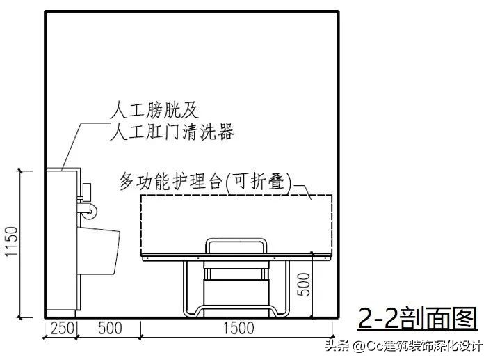 案例2 适用于老年人照料设施居室、医院病房等居住单元中的卫生间