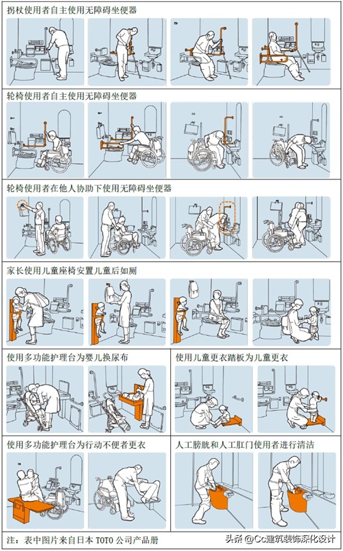组图 5‑10 案例10:适用于多种人群(老幼病残孕)使用的综合多功能卫生间设计案例(图片来源:日本TOTO公司产品册)