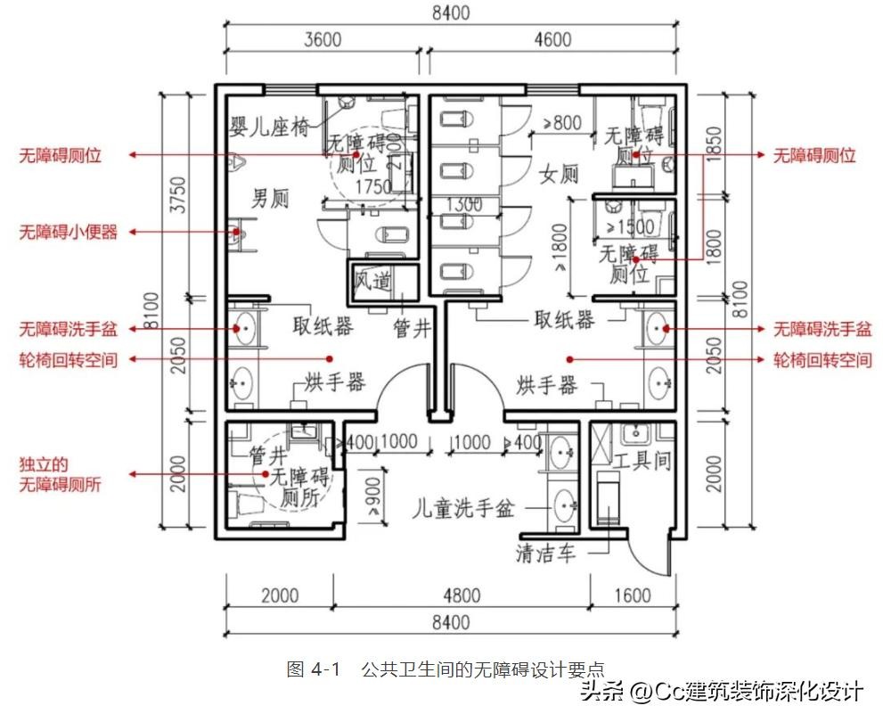 ③ 大型公共建筑公共区域中的公共卫生间及其无障碍设计需求