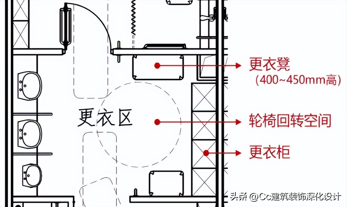 图 4‑5 无障碍更衣室的设计要点