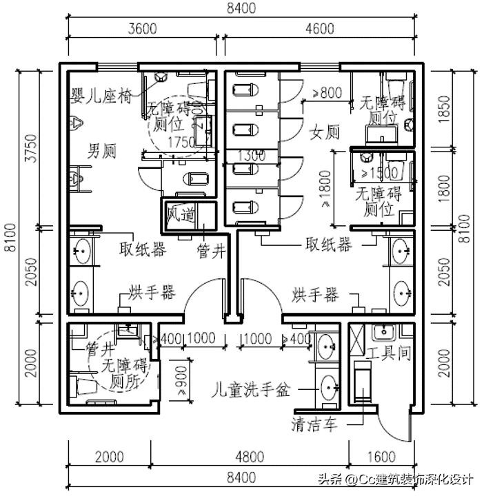 案例8 适用于高速公路服务区、大型车站等场所的集中式公共卫生间