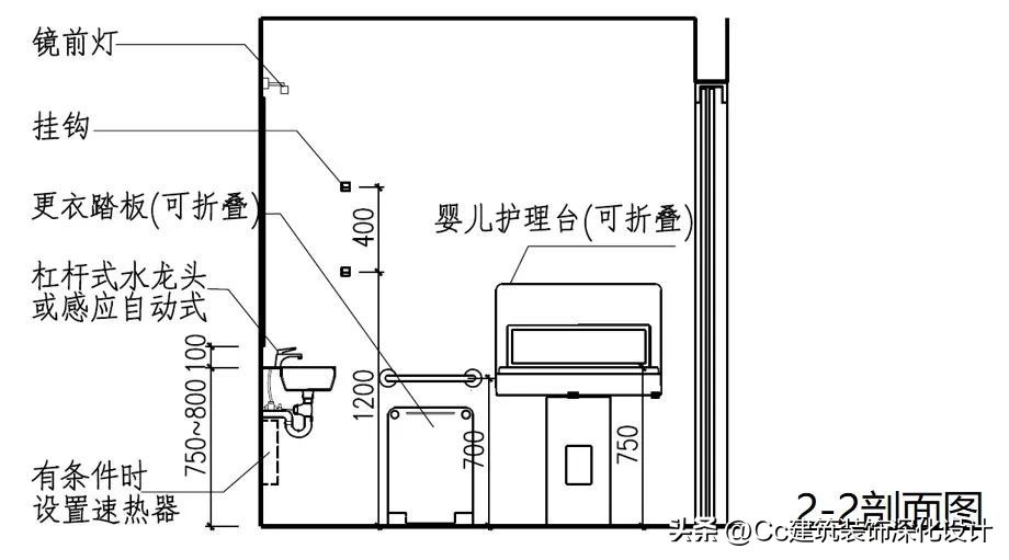 实际上其使用人群还包括老年人、病人、儿童、孕妇以及他们的陪同人员,等等。不同人群的身体状况和使用需求各异,如果仅考虑残障人士需求,往往并不能够方便所有人使用。例如,对于带着婴儿的母亲而言,一些无障碍卫生间中就缺少婴儿座椅,导致母亲在如厕时无法将婴儿妥善安置。因此,卫生间的无障碍设计应充分照顾到各类人群的使用需求,切忌以偏概全。