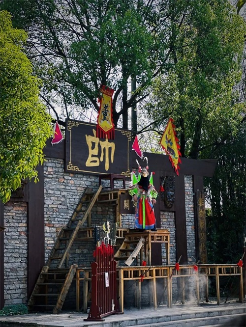 屯堡中的非遗地戏,也随着屯堡的保存而传承了下来。历史上,随着屯堡制度退出历史舞台,为了阻止“武事渐废”的趋势,“有识者”想出了跳神戏的办法,在跳神中演习武事,就是地戏的缘起。头戴木刻假面,脸部蒙盖青纱,手持短小兵器,但表演动作幅度大,演唱着七言和十言韵文,这就充满神秘的地戏。如今,屯堡与地戏早已成了安顺旅游的重要标签。