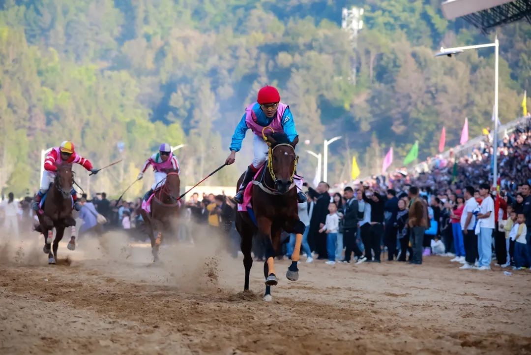 贵州不仅有“村超”,还是激烈的“村马”。贵州省黔南州三都水族自治县,被誉为“马背上的民族”,人民自古爱马、养马,每逢过节都要举行盛大的赛马比赛。如今,过节才举行的赛马活动,已经成为一种新的时尚体育消费,被网友称为“村马”。赛马场上,一声令下,十几匹快马从马闸一跃而出,此起彼伏的加油声、呼喊声,给近距离观赛的观众带来全新的体验感。“村马”的强势出圈,使“贵州村马”成了全体村民共同的节日,也引来了越来越多的国内外游客为此专程而来。