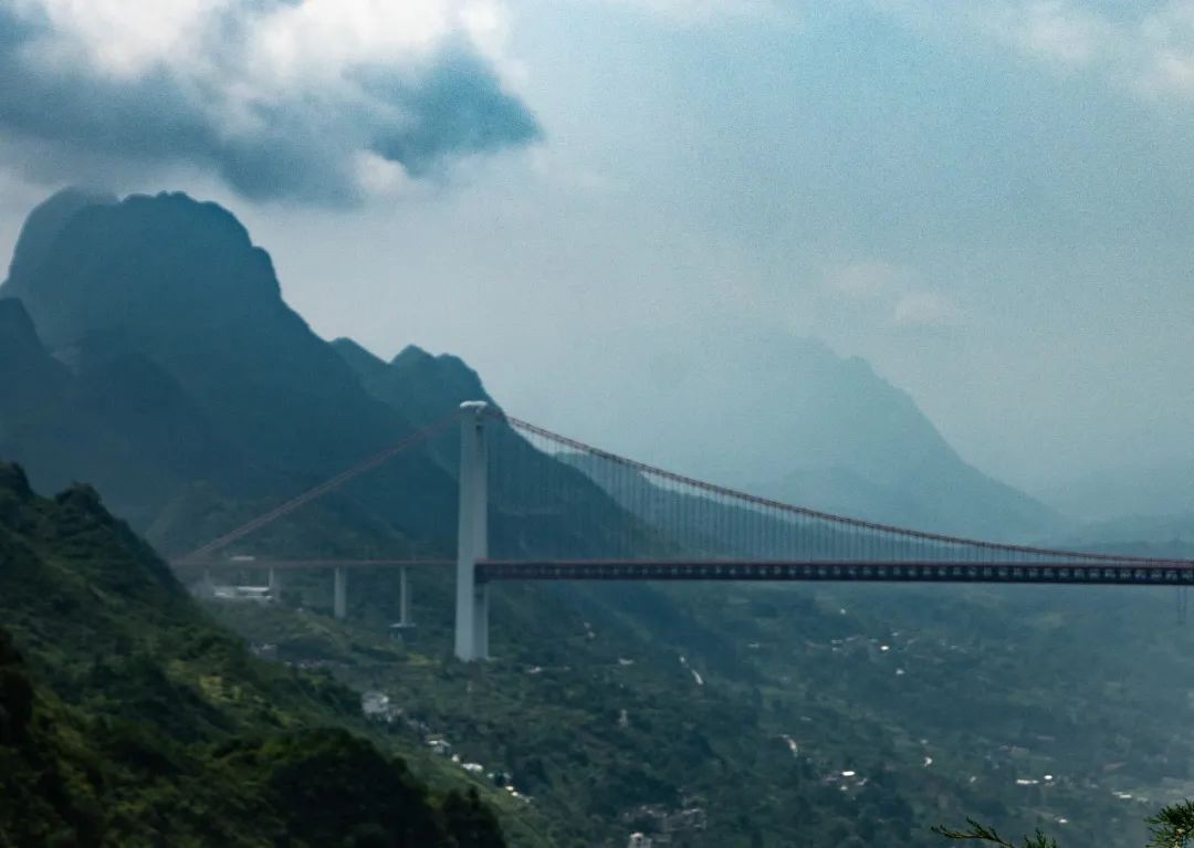 贵州遍布山间的村寨,冲破山河阻碍走出去是另一个挑战。他们遇山修路,见河搭桥,而路与桥皆是世界级的超级大工程。2016年,在典型的喀斯特高原、峡谷之上,鸭池河特大桥横空出世。桥梁起于黔西县铁石乡米新寨,向东南跨越鸭池河后,终点止于清镇市暗流乡沙田村垄上组,成为举世闻名的成贵高铁6座重点桥梁之一。