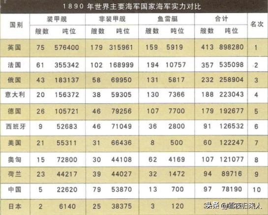 同近代日本海军一样,晚清海军是中国近代最重要的新式武装力量。由于它曾在世界海军史上产生过重要的影响,因此人们总是希望弄清它在当时的地位。关于晚清海军在世界海军排行中的名次一直是见仁见智,分别有第4位、第6位、第9位、第10位、第11位等多种说法。但是,晚清海军(以及日本海军)到底居于什么名次呢?这不仅关系到中日军事近代化的重要成果的地位评估,也涉及到对中日海素质的综合评估问题。