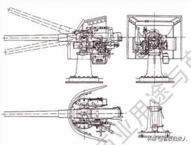 当时的制退复进机有两种不同的类型:一是水压弹簧式、二是水压气体式,二者的制退原理相同,但复进原理不相同。甲午战争时的速射炮仍以水压弹簧式为主水压气体制退在三年后才由法国发明出来。上图为维克斯公司制造的6英寸(152mm)速射炮。下图为英制6磅(57mm)速射炮的结构图,日本曾根据其图纸仿制了57mm山内式速射炮。