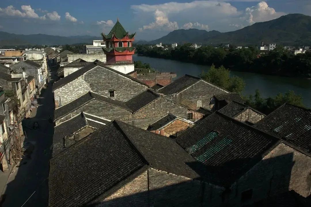 古明城,即“明富川城”,是镶嵌在潇贺古道旁边的一颗明珠,绚丽无比,光照照人。据旧县志载,该城建于明洪武二十九年(1396年),城墙外围的东西南北向分别筑有升平、泰定、向日、迎恩四座雄伟的城楼,与四楼相连接的城墙高6米、宽2.7米,城墙周长2113米,城东西距500米,南北距600米,总面积为0.3平方公里,辖百户千居,共八街十六巷,外有护城壕。按当时的建城规矩,四个城门都有镇城之石,我们特别在南门参观了镇城石“芒鞋石”,非常形象。城南有七层古塔,塔下有慈云寺,与城北蟠龙山和城东马鞍山对峙,形成天然屏障。有军事战备垛口909个,其森严壁垒,固若金汤。“明富川城”在选址与布局上十分讲究,除有发展经济、文化等方面的科学设置之外,还具有军事防御的战备功能,是一座进可攻、退可守的军事古城。因此,富川古明城是潇贺古道上拥有六百多年历史的历史建筑群,既是一个商业古城,也是一个军事战略古城,也是广西难得的保留较完整的古县城遗址之一。它犹于立在风光旖旎的富江河西畔,一幅悠然雅致、画风淳朴的山水画。
