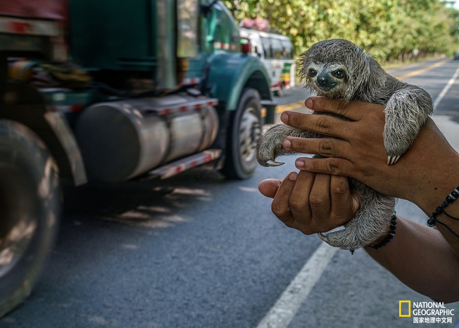 母树懒摔晕了,向偷猎者扫了扫手臂,摆出防御的姿势。人们常常错误地认为树懒很随和,不会因人类行为而感到不安——它们的脸甚至给人以微笑的感觉。但是,这些动物很容易受到压力,许多从野外偷猎来的树懒在圈养中很快就会死亡。