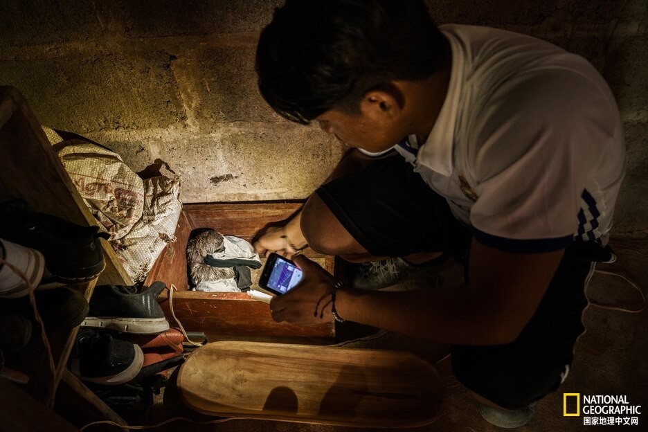 Morales用手机的手电筒检查这只小树懒,这只树懒是在前一天应一个买家的要求捕获的。12月到2月通常是最繁忙的月份,他和他的朋友们可以卖出至少30只树懒。"Morales说:"我真的很想金盆洗手,但为了养活母亲和九个兄弟姐妹,我别无选择。"