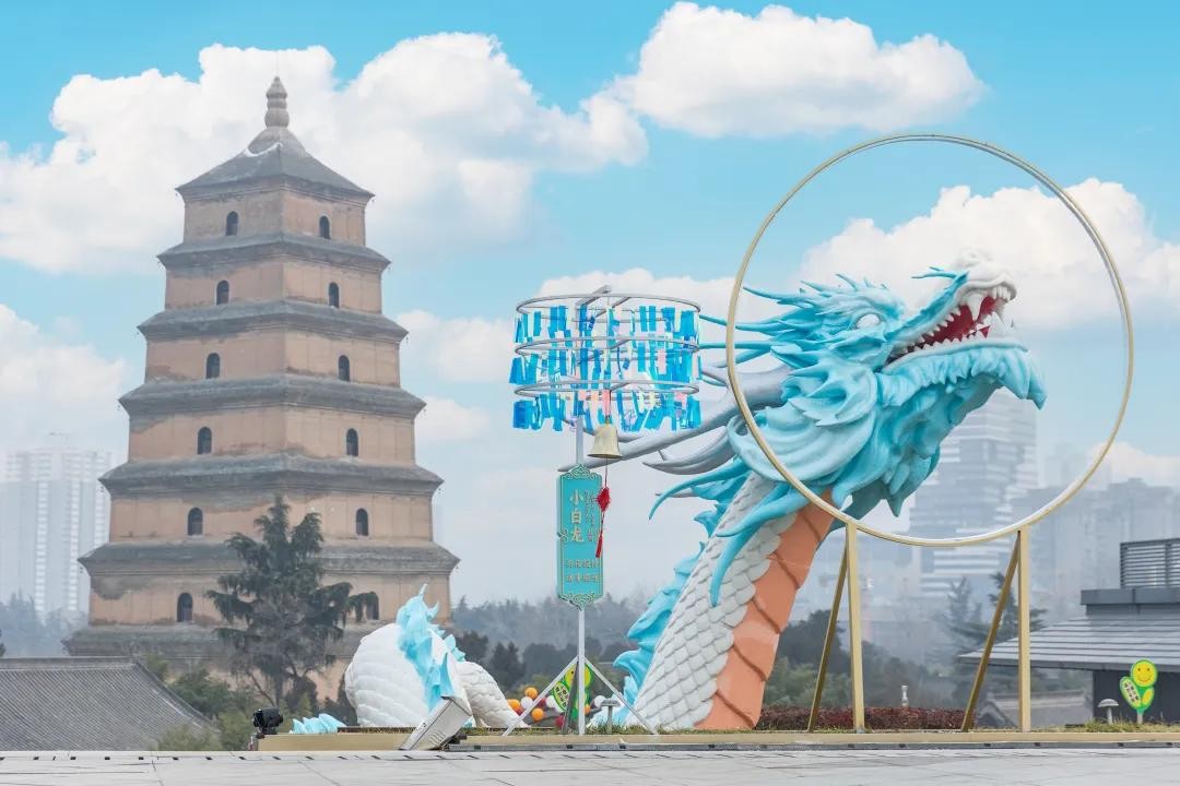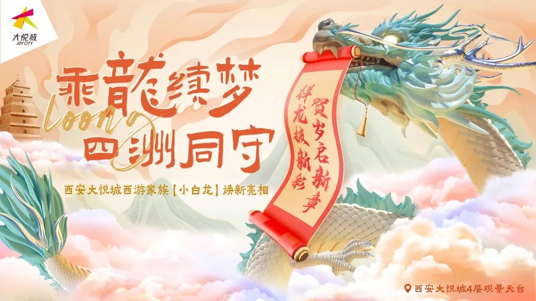 此外,以自有西游IP为切入点,依托大雁塔观景平台,结合西游文化打造小白龙主题常态化装置美陈场景升级焕新,以及小白龙周边衍生产品首发,至此,继悟空、八戒、唐僧之后,小白龙正式加入西安大悦城西游大家族。