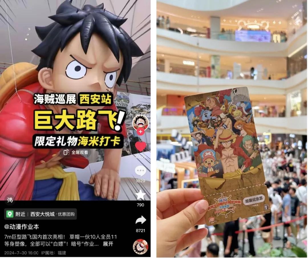如在暑期打造的航海王动画25周年特展全国首展,以极强的独家性与粉丝效应,次元文化体验场景、巨型打卡装置、珍藏手办限定产品、coser巡游、集章打卡等丰富的互动活动,差异化满足新青年客群的二次元生活方式体验,让项目稳坐城市TOP主场,吸引本地及全国粉丝前来打卡。
