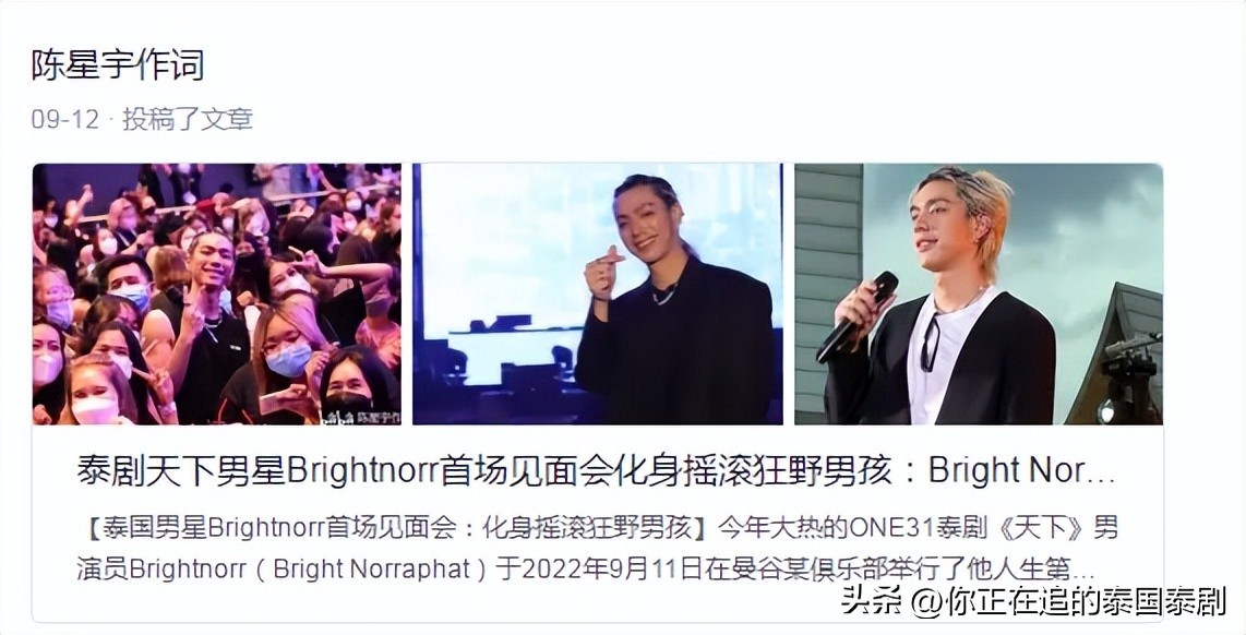 泰剧天下男星Brightnorr首场见面会化身摇滚狂野男孩:Bright Norraphat被泰国ONE台力捧