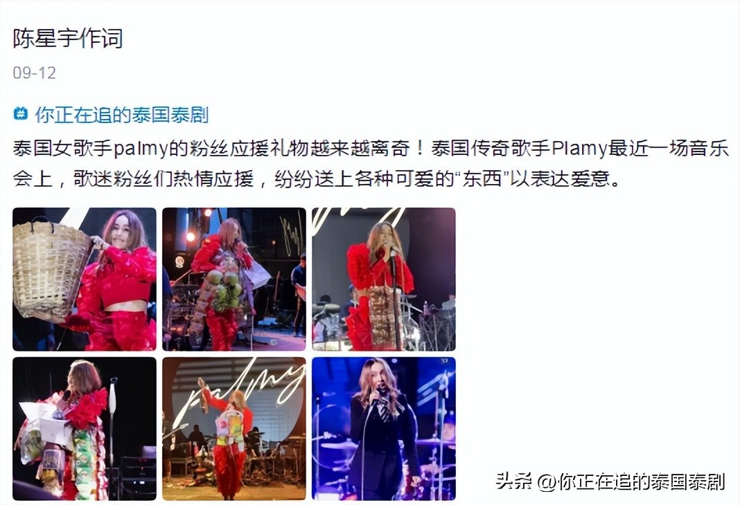 泰国女歌手palmy的粉丝应援礼物越来越离奇!泰国传奇歌手Plamy最近一场音乐会上,歌迷粉丝们热情应援,纷纷送上各种可爱的“东西”以表达爱意。