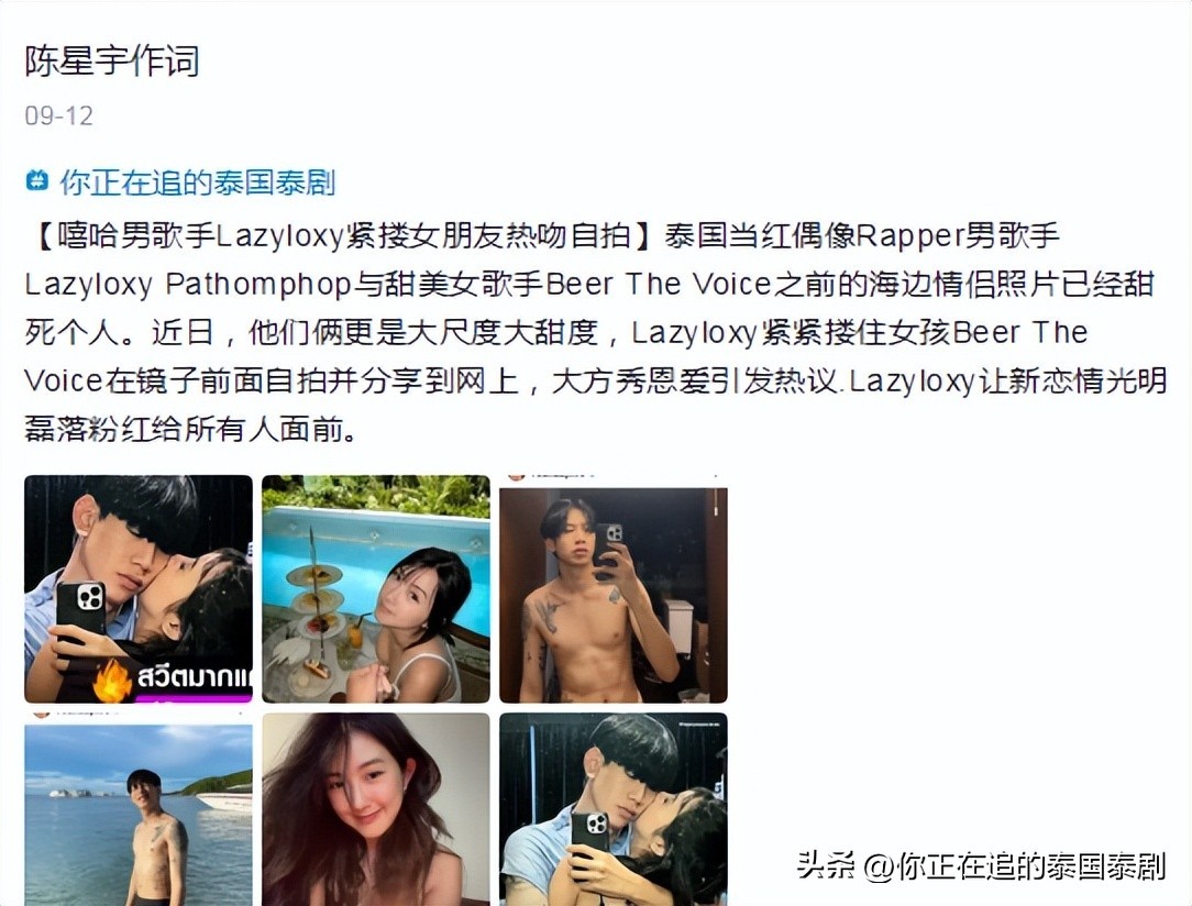 【嘻哈男歌手Lazyloxy紧搂女朋友热吻自拍】泰国当红偶像Rapper男歌手Lazyloxy Pathomphop与甜美女歌手Beer The Voice之前的海边情侣照片已经甜死个人。近日,他们俩更是大尺度大甜度,Lazyloxy紧紧搂住女孩Beer The Voice在镜子前面自拍并分享到网上,大方秀恩爱引发热议.Lazyloxy让新恋情光明磊落粉红给所有人面前。