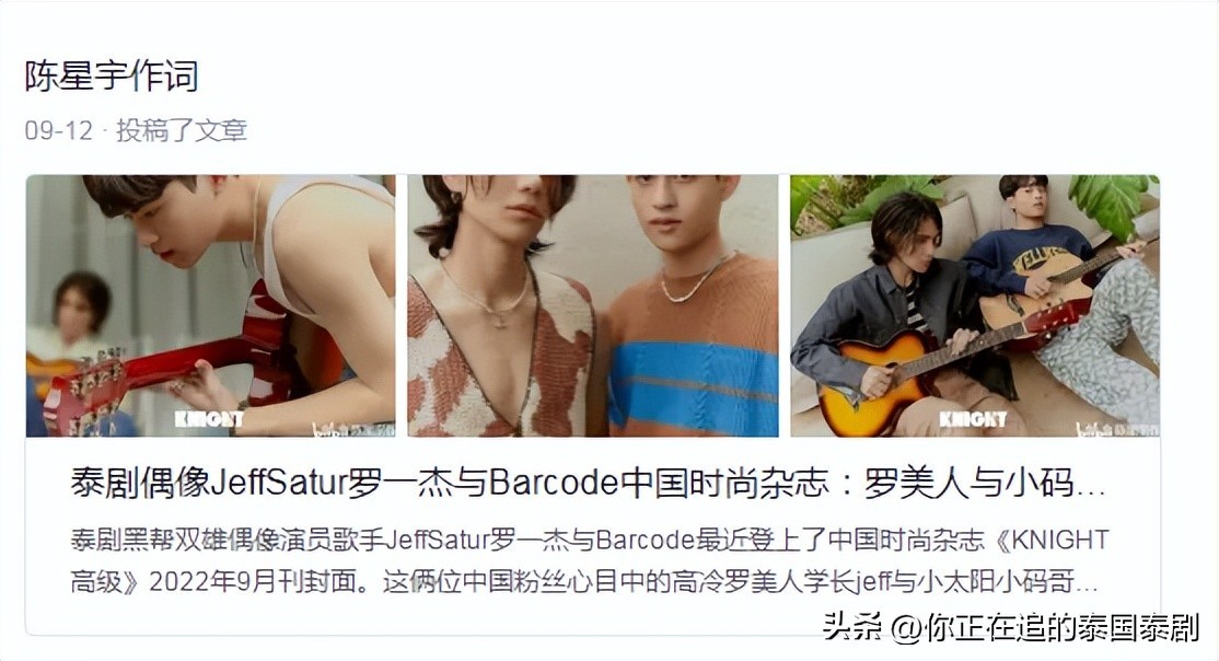 泰剧《黑帮双雄》偶像歌手JeffSatur罗一杰与偶像演员Barcode中国时尚杂志:罗美人与小码哥泰国少年音乐时光