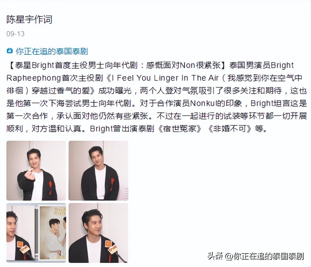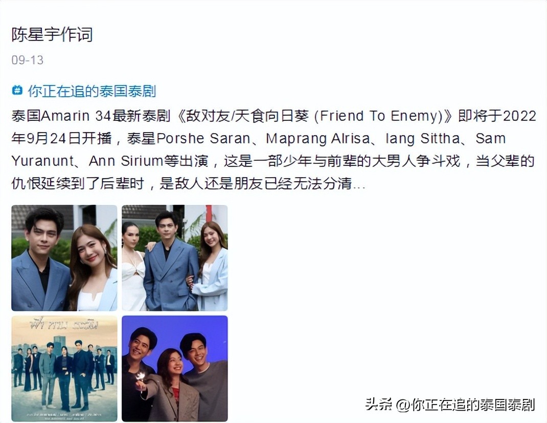 泰国娱乐文化媒体评论人,泰国音乐文化节目主编@陈星宇作词 专题分享。更多泰国文娱资讯可以关注【你正在追的泰国泰剧】或VB@陈星宇作词