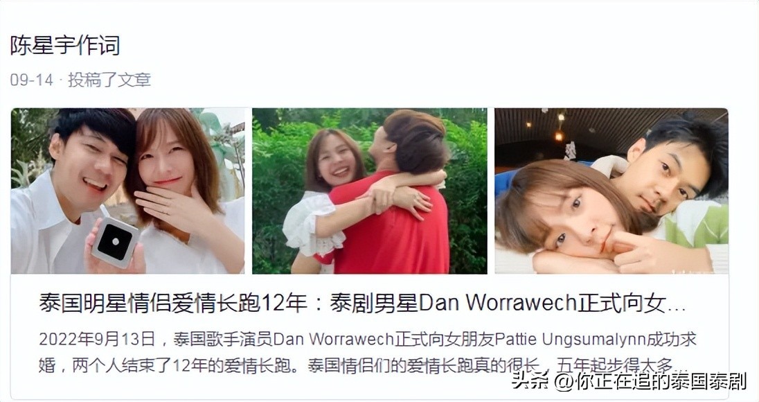 泰国明星情侣爱情长跑12年:泰剧男星Dan Worrawech正式向女友Pattie成功求婚
