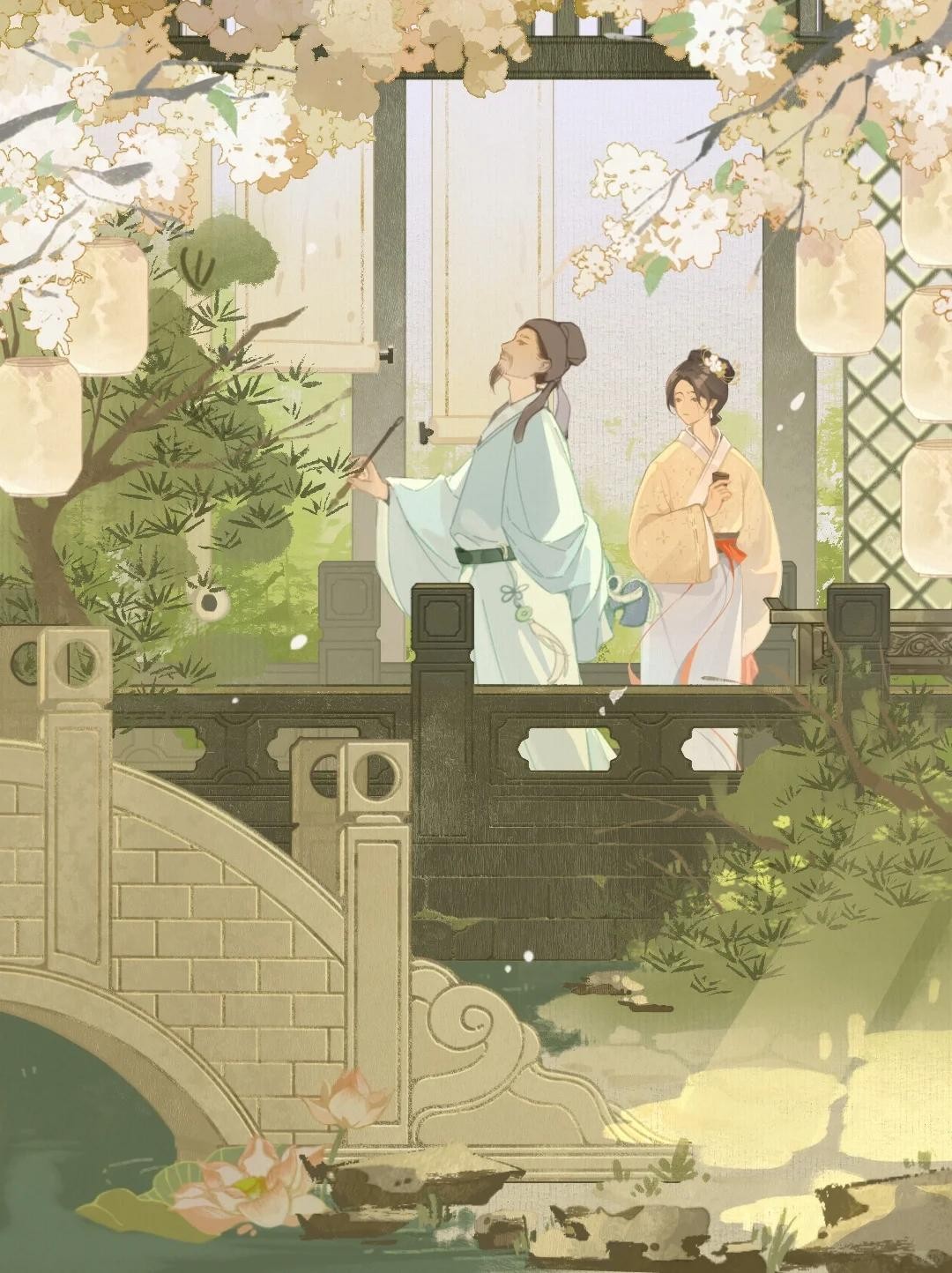 “春日游,杏花吹满头”,点明时间是春日,并勾勒出一幅美好的春日图画:一位妙龄少女去郊外游春,杏花纷纷扬扬,落了满头。春意已浓,少女的春心也在悄然萌动。