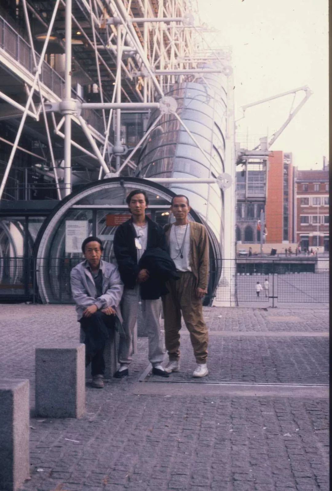杨诘苍、顾德新、黄永砯三人在巴黎蓬皮杜艺术中心门口,1989年