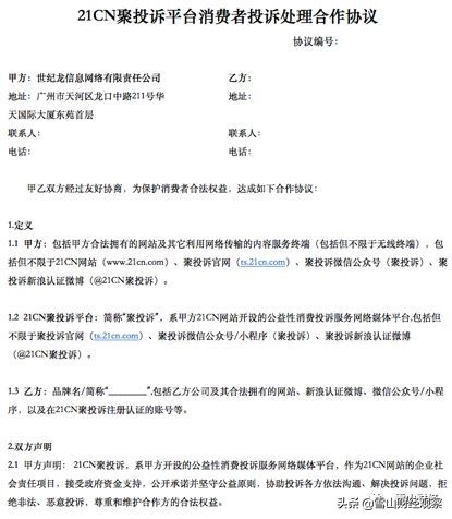 这其实是一个21CN代表“聚投诉”与合作企业拟签订的协议。