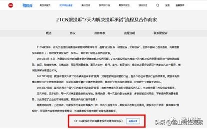表面上看,投诉“绿色通道”、“7天内解决投诉承诺”,为消费者提供更便捷的服务,真是消费者的福音。但实际情况并不那么简单。点开“聚投诉”首页“投诉绿色通道”栏后会发现,在一段“21CN聚投诉‘7天内解决投诉承诺’流程及合作商家”的介绍最下方有一行《21CN聚投诉平台消费者投诉处理合作协议》的小字。