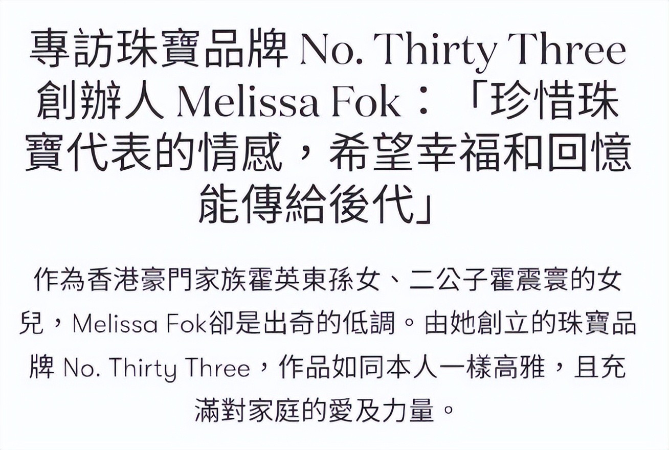 但近日霍震寰的女儿霍思纬(Melissa)现身国外华人珠宝设计展,坐拥家族百亿的她早就成为了低调的隐身女富豪。