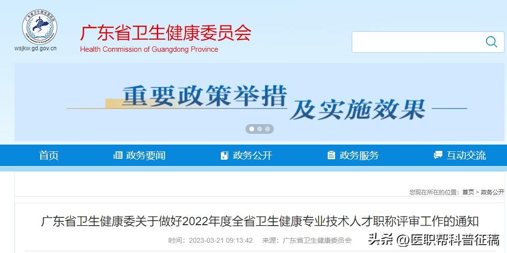 广东省2022年度卫生高级职称评审通知