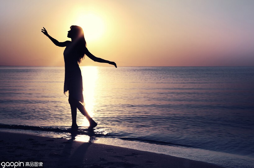 利用逆光只拍人物也能拍出高质量的照片。图为一个走在海边的女生,利用逆光拍摄的手法,将摄像机正对太阳光线,这样一来人物在画面里就会变成一个剪影。