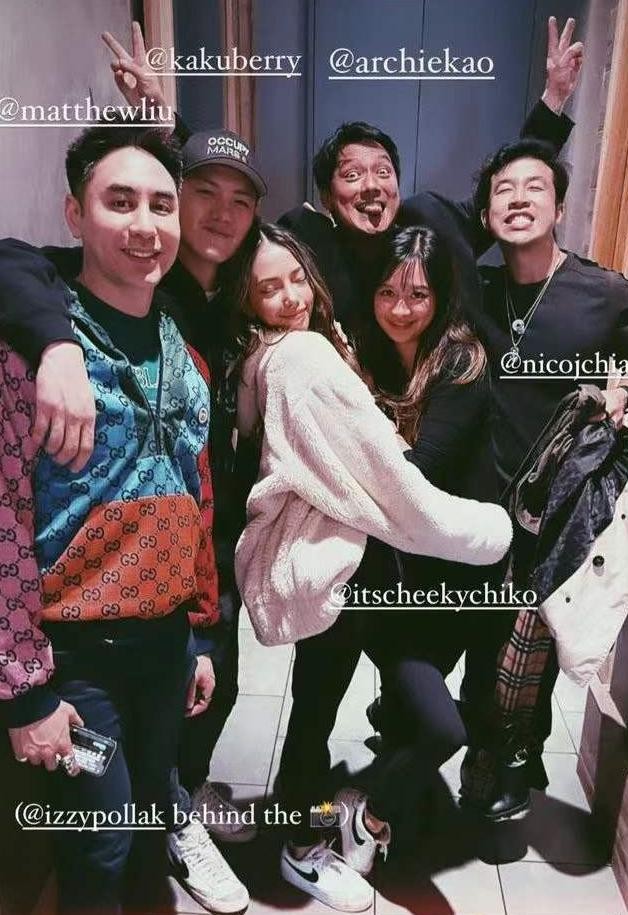 另一张照片中,高圣远和一众友人欢聚合照,离婚后生活潇洒滋润。这位美女依旧和高圣远站在一起,乍一看她似乎是依靠在高圣远的怀里。