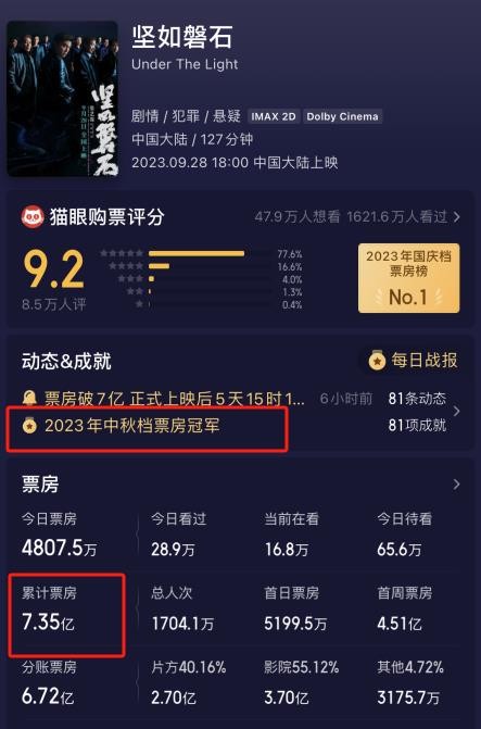 电影《坚如磐石》由著名导演张艺谋执导,已经创下超过7亿的票房佳绩,成为中秋和国庆档的票房冠军。这部电影不仅引起了广泛的瞩目,还在观众中引发了深刻的讨论。电影中包含了一些大尺度而敢于突破传统的桥段,如火锅烫人手、制造车祸、奸杀和砍人等,使电影充满高能和悬念。