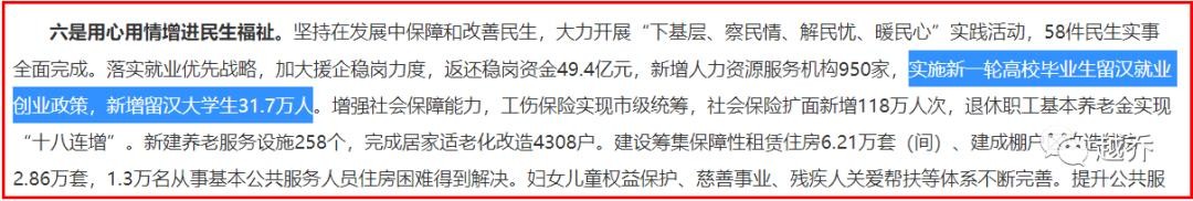 不过,据2023年武汉政府工作报告显示,2022年新增留汉大学生31.7万人。