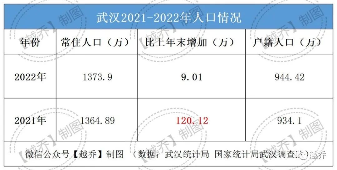 不难发现,2022年武汉常住人口增量9.01万人相比2021年常住人口增量120.12万人相差甚远。