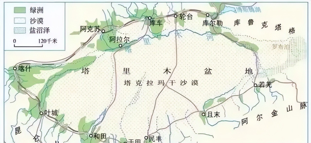 ▲南疆河流和绿洲分布