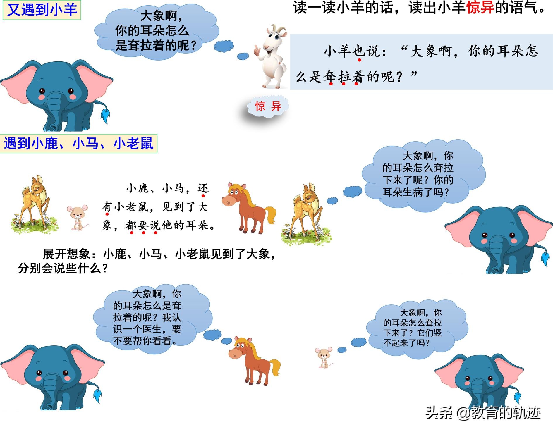 读课文第2-8自然段,思考:大象为什么要改变想法?画出文中写了哪些小动物及他们说的话。