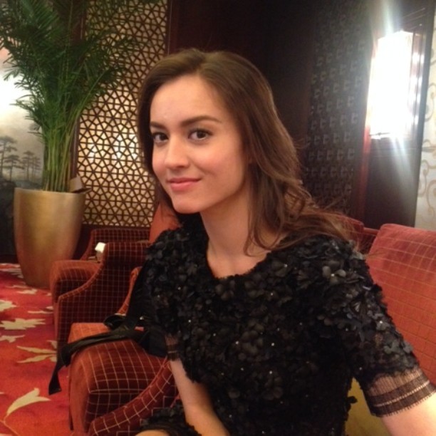 蕾丝背心搭配黑色半身裙,纤细的身材和明艳挂的容貌,就算在模特中也是很出彩的类型。