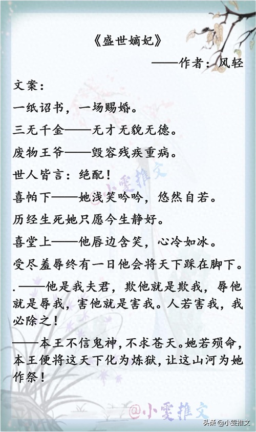 3本强强古风言情文《盛世嫡妃》《灭天道后我成了死对头的师妹》