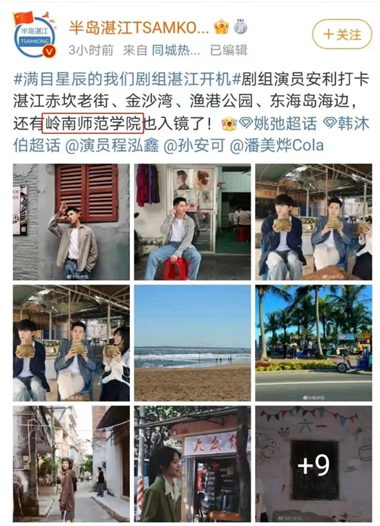 据了解,原来是最近有剧组到岭南师范学院取景拍戏,可能是由于剧情需要,换上了“东海宁州大学 ”几个大字。
