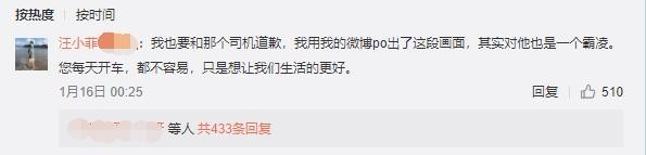 在动态下方评论区里对司机道歉,表示都不容易,只是想让我们生活的更好。