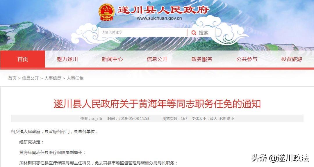 周林梅同志任县医疗保障局副主任科员,免去其县市场监督管理局碧洲分局局长职务;