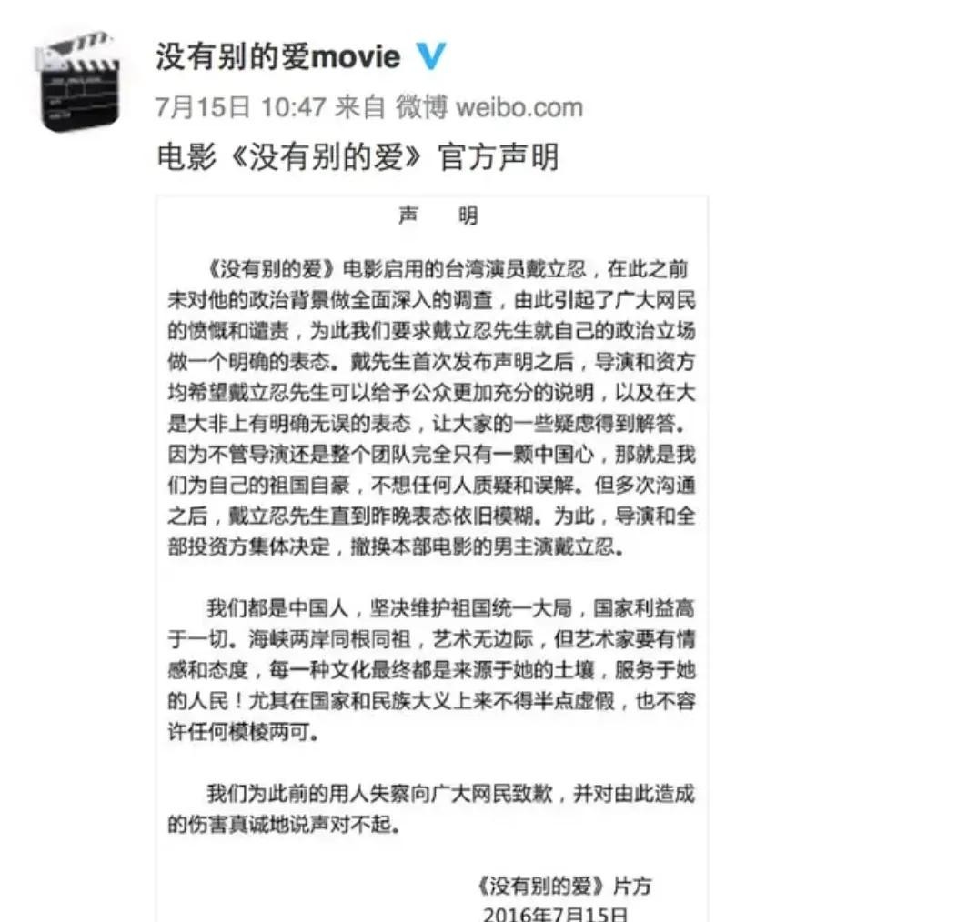(2)2016年赵薇导演的作品《没有别的爱》其邀请的主演中的戴立忍和水原希子,这两位主演对华的态度很不友好。触犯了全国人民的底线。