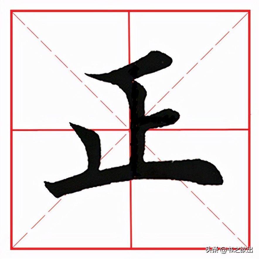 “正”字只由横和竖组成,注意各自的位置和形态。