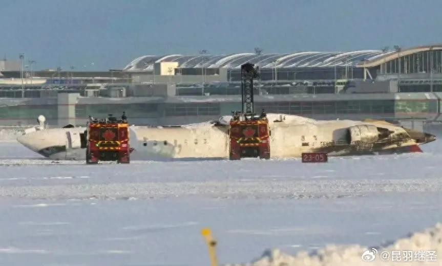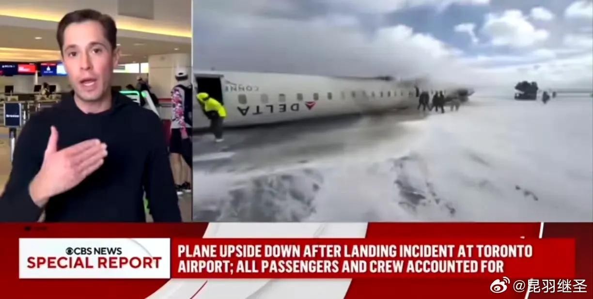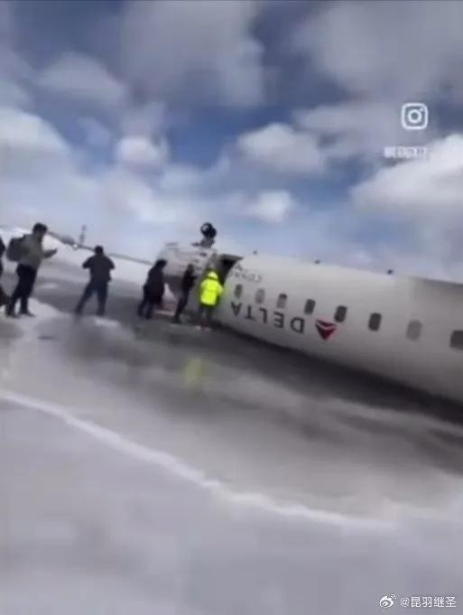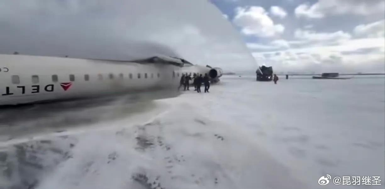 2月17日下午,美国达美航空公司一架客机在加拿大多伦多皮尔森国际机场着陆时发生事故,侧翻后上下颠倒,前起落架还在,但机翼和尾翼已经损毁。