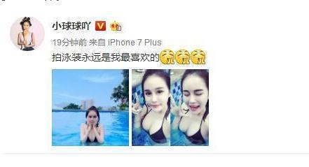 照片中,只见她在泳池中的球露出一大半,好身材一览无余,格外的吸睛!球球,对的就是那个球!